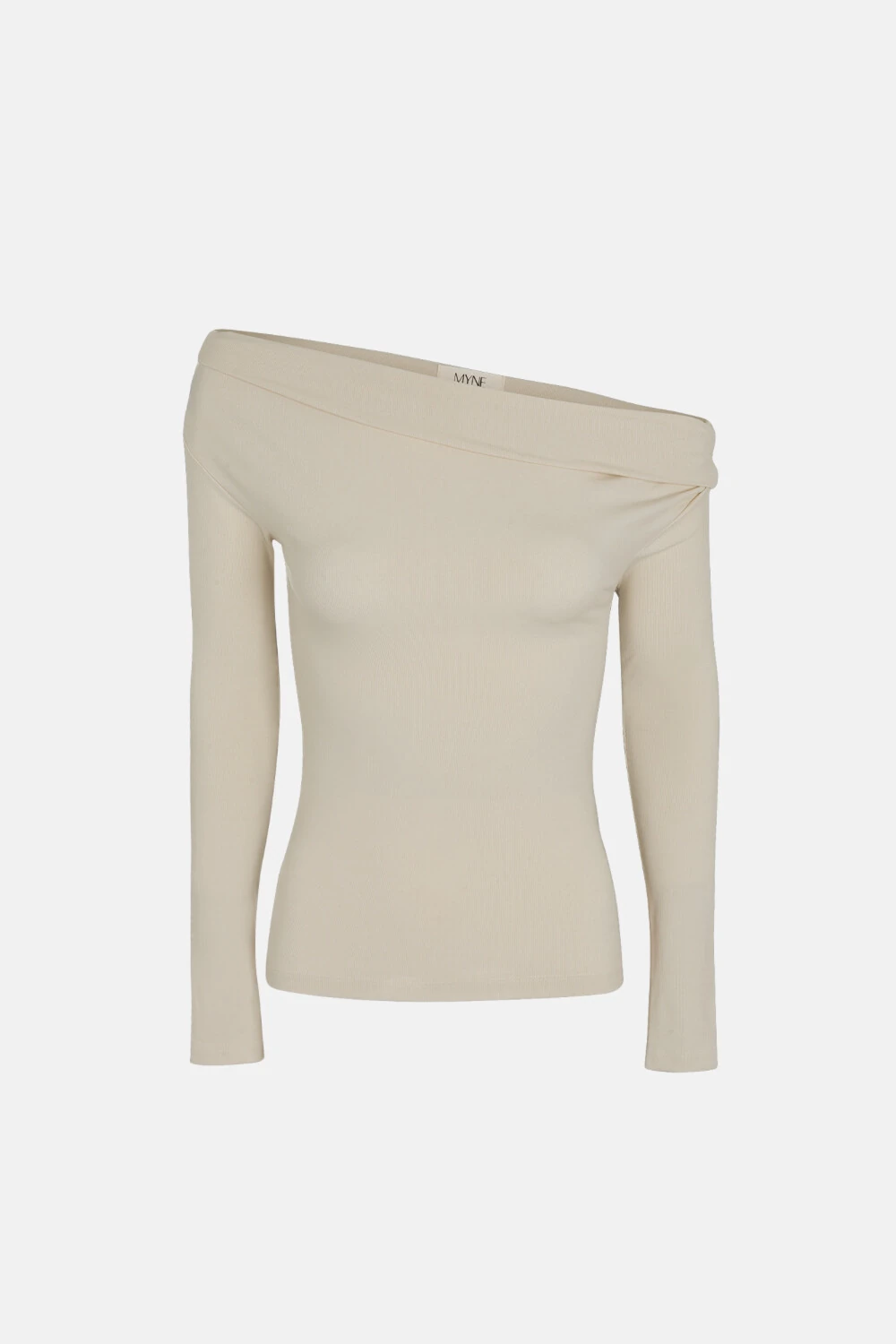 A Blusa Manga Longa Assimétrica é confeccionada em malha canelada, sendo 91,5% viscose e 8,5% elastano. O tecido possui boa elasticidade. A modelagem é justa, com mangas longas, e decote assimétrico, que pode ser usado ombro a ombro, ou com um ombro no lugar e o outro deslocado. O comprimento é acima do quadril.